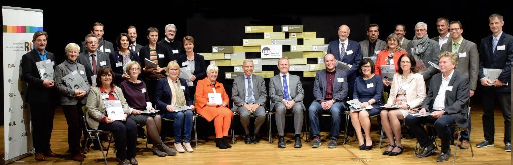 - Vertreter und Vertreterinnen der Partnerschulen, Prof. Dr. Udo Hebel (Präsident der Universität Regensburg), Prof. Dr. Karsten Rincke (RUL-Vorsitzender), Stefan Prock (Mitglied des RUL-Vorstands und federführend für das Schulnetzwerk dialogUS). (c) RUL