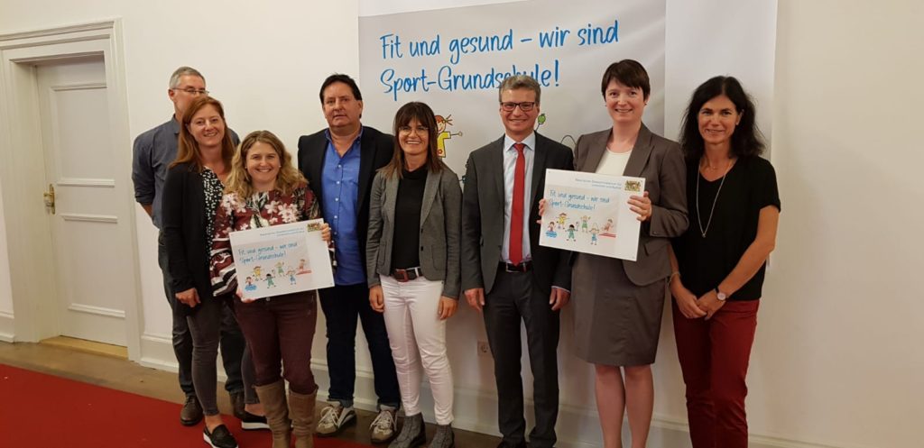In einem Festakt im Münchner Kultusministerium übergab Staatsminister Bernd Sibler allen neuen Sport-Grundschulen die begehrten Plaketten. Darunter befanden sich auch die GS St. Josef Straubing, GS St. Englmar-Neukirchen und GS Bogen. Die Schulen erhielten zudem eine Zuwendung über 1000 € zur Anschaffung von Kleinsportgeräten, um damit die Schulen in ihrem Profil zu unterstützen.